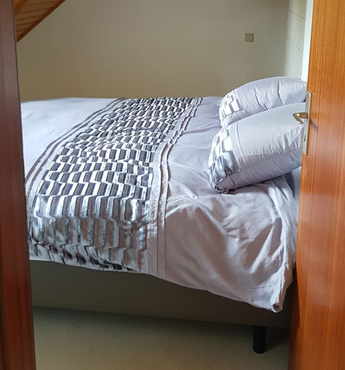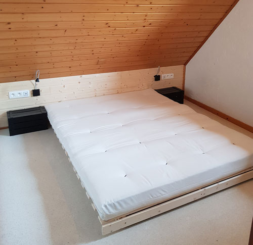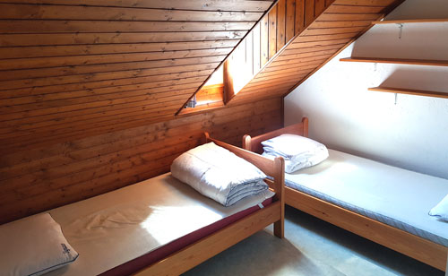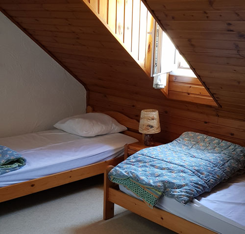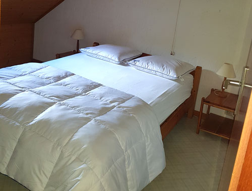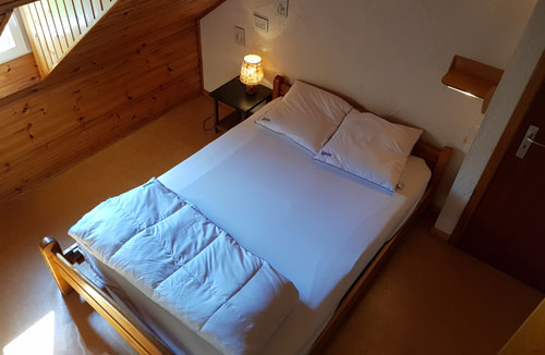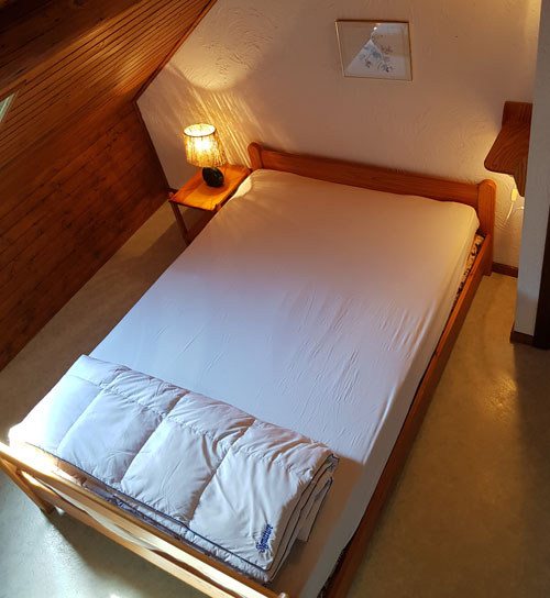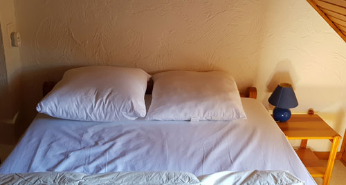 - 1 chambre avec un lit double (140x200cm) ; couette et oreillers en plume de canard