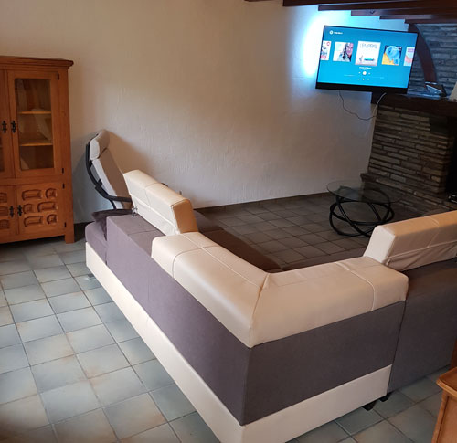 - Séjour avec cuisine ouverte équipée : percolateur, four, mixeur, bouilloire…